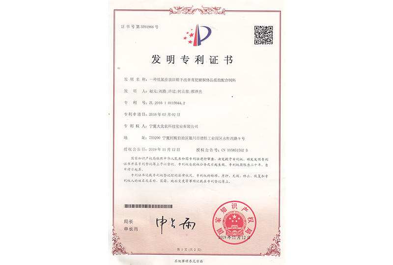 一种低氮排放日粮下改善育肥猪胴体品质的配合饲料