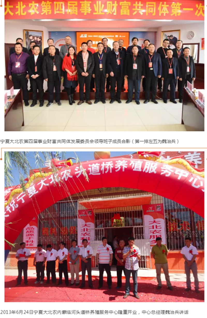 2013年宁夏大北农成立事业财富共同体发展委员会。在建设事业财富共同体新商业模式的战略部署下,魏老师积极响应号召,将饲料专营店转型升级打造为内蒙临河杭锦后旗头道桥养殖服务中心,魏老师担任服务中心总经理。一流的品质、一流的服务、一流的管理、一流的价值是魏老师对服务中心的经营宗旨和管理目标定位。在他的带领下,服务中心充分整合利用大北农在品牌、人才、技术、信息、管理等方面的优势资源,不仅为当地奶牛养殖牧场和养殖户提供大北农高档奶牛专用饲料和兽药、牧草等养殖物资,还成立专业技术服务团队提供全方位的养殖技术服务。服务中心在魏老师的精心经营下逐步走上公司化运作、科学化管理、专业化服务、产业化运营的转型升级发展之路,为引领促进当时养殖业健康高效发展发挥着带动和示范作用。
