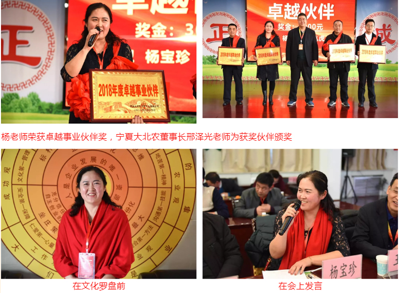 杨老师热衷学习和不断提升自己,宁夏大北农是学习进取型的组织,内涵丰富、富有鲜明时代特色的企业文化和理念,让杨老师感觉自己加盟大北农后,不再是个只卖饲料的小老板,而是在做一项朝气蓬勃的前景无限光明的大事业,做事的精气神和底气都较以往有了非常大的正向提升。杨老师积极参加公司、牛羊料事业部组织召集的各种会议、培训活动和游学活动,用心领悟会议精神落实会议部署,随时调整工作方法和策略,紧跟大北农发展步伐;认真学习和汲取大北农文化理念的精髓,提高自身的综合素质,并加以应用到实际经营管理中。在大北农浓厚文化氛围和创业氛围的熏陶和带动下,杨老师正逐步朝着现代农牧企业家的方向成长和迈进。